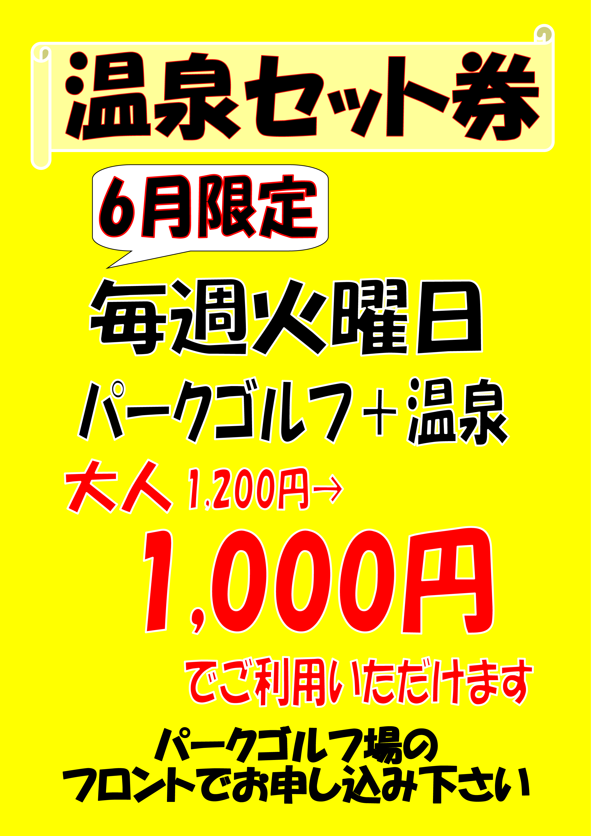 雨天等でパークグルフが中止になっても、薬師の湯に早めの入館ができ安心です。