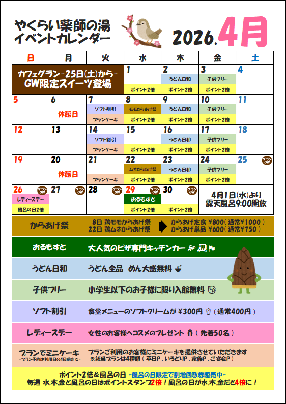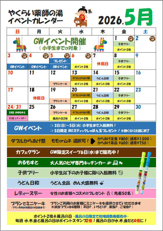 ※入浴券(2時間券)を延長されてもお部屋の延長には適用外です