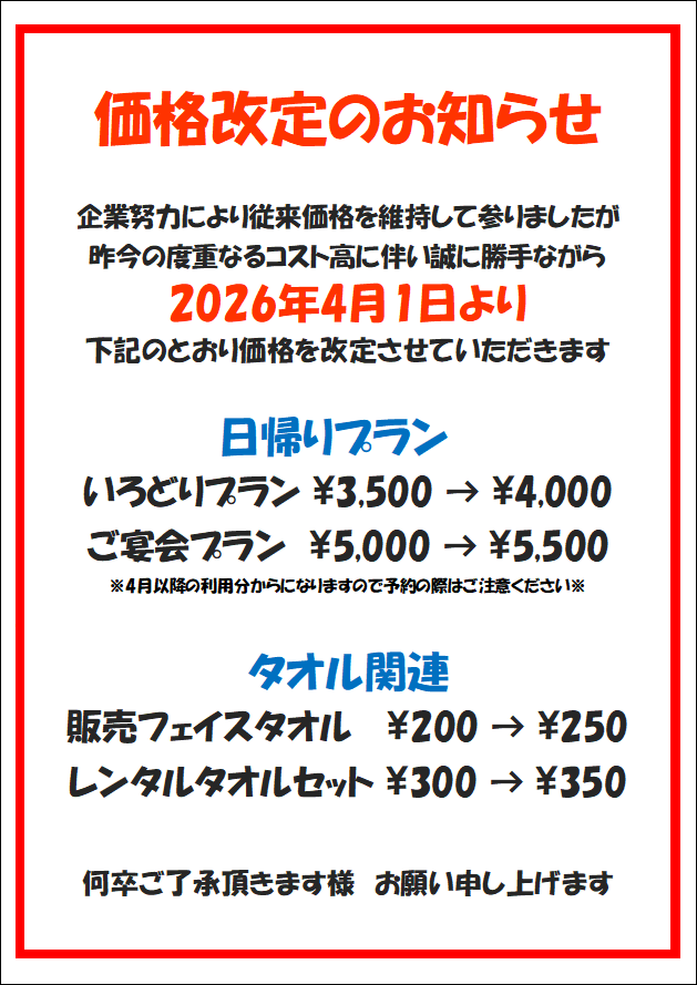 ※タオル価格は予告なく変更する場合がありますので予めご了承下さい